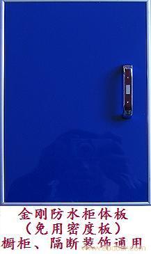 常州市永杰装饰材料厂生产的EOP特种金刚柜门板是一款代替钢化玻璃贴膜工艺的一代产品,完全避免了外出加工贴膜、玻璃钢化等繁琐程序和运输破损率高、贴膜起泡、交货期不稳定等诸多弊端。这种新型门板面如镜、硬如钢、耐酸碱、阻燃型(离火自息)、防霉变、防虫蛀、100%防水,有18种玻璃钢胶加工成的流行色(单色、闪点任意选择),板厚只需4.2-4.3mm,只要插在带有4.5mm槽口和转角件的铝合金封边框就能组成一个高贵华丽的柜门板,不用螺丝不用胶,四八尺大板裁切随心所欲、这种门板加工方便、操作简单、可锯可刨可钉可钻可粘。而且裁切下来的边料不要浪费,可以制作小样分发给你的分销商和客户。该新颖门板主要用于橱柜、衣柜、浴柜、书柜、隔断、场所装饰贴面之用,并能广泛用于化工、石油、电镀、矿山、医药、电子、通讯和水净化处理设备、环保设备等行业。总经理亲自掌控饰面设计、生产管理、成本控制。产品质量、价格均得到客户的一致认同和好评,使用该产品具有经久不衰的竞争力。欢迎来人来函洽谈,咨询敬请联系胡总  好产品尽在www.czyjzs.com