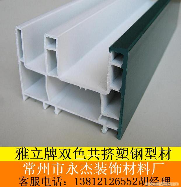 常州市永杰装饰材料厂拥有10组大、中型双螺杆、单螺杆挤出机,专业生产各种白色、彩色和双色共挤塑钢型材,其中自主开发的双色厚边共挤型材的特点是焊接、清角不露白。规格有80系列、60系列,总经理亲自掌控从造粒到模具的设计研发、工艺配方、成本管理及产品挤出,有着多年精湛的生产管理技术和经验。多年来产品质量、价格均得到全国各地广大新老客户的普遍认同和好评,使用永杰型材具有经久不衰的竞争力。欢迎来人来函洽谈。